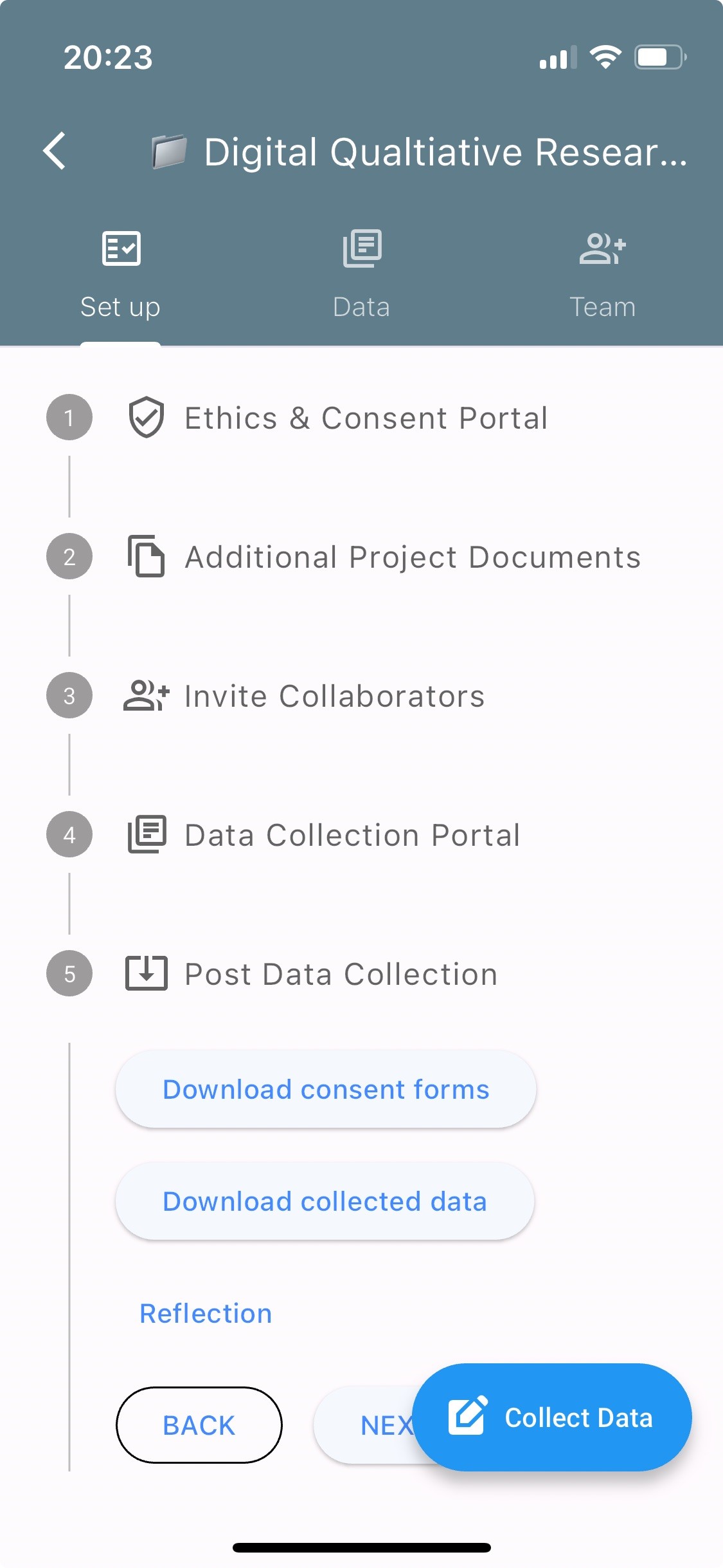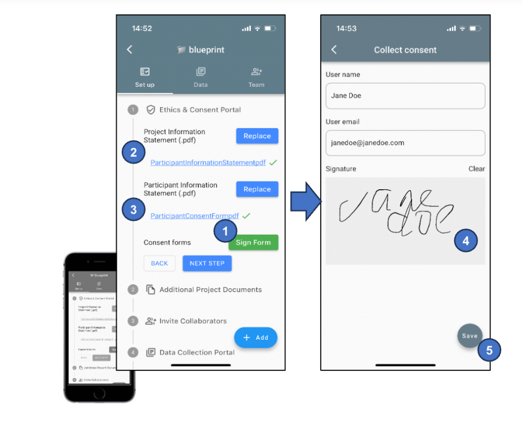 Upload Participant Information Statements and Consent Forms as PDFs. Participants can consent directly in the app.