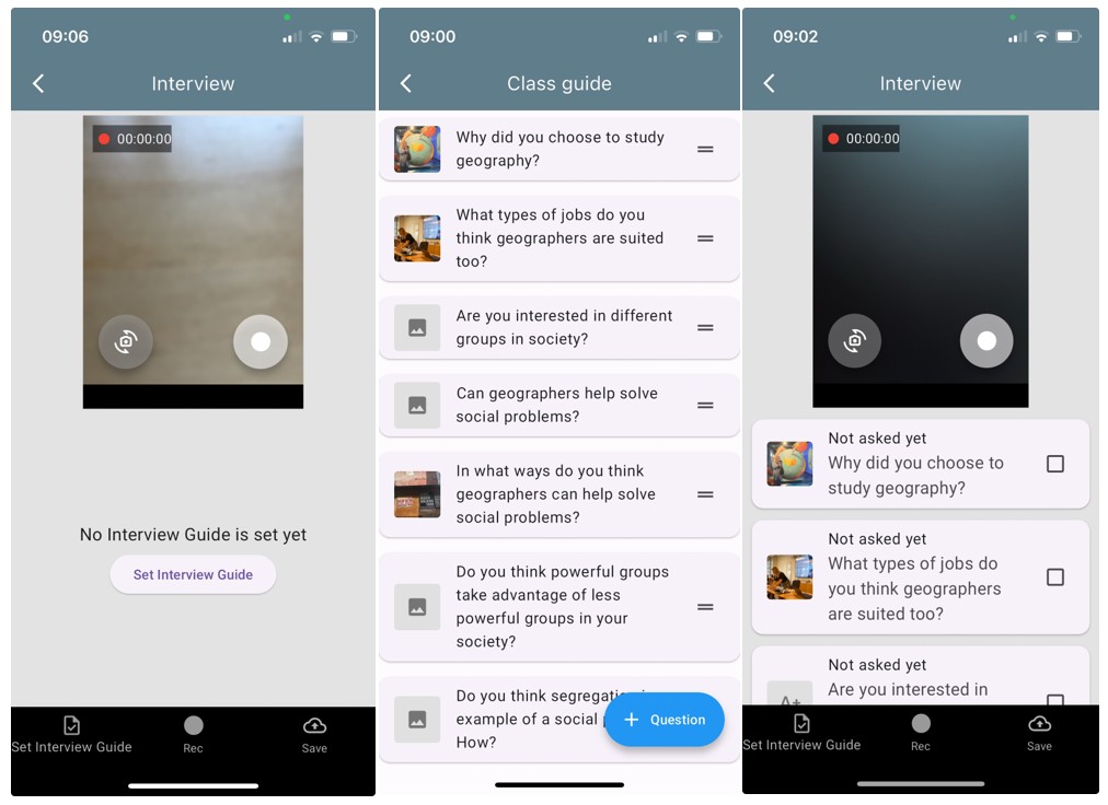 Create a qualitative research interview schedule, with photo elicitation options. Use that schedule to record your interview with sound and/or video. The recording is timestamped by question for easy transcription.