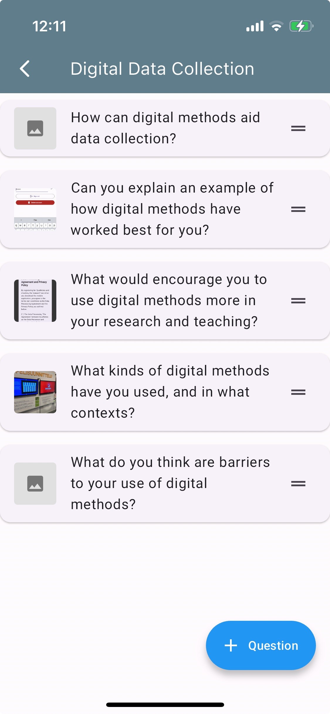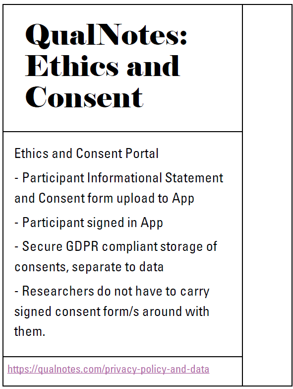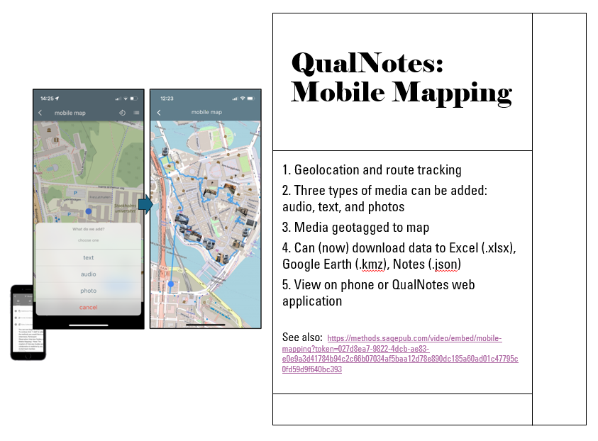 QualNotes is the first mobile application for the collection of qualitative data. It provides secure ethics and project management and integrates three methods of qualitative research: mobile mapping, interviews, and participant observation.